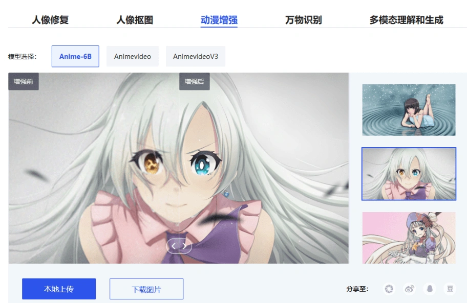 - 动漫增强:通过这个功能,可以增强动漫照片的线条感,使其更具动漫风格