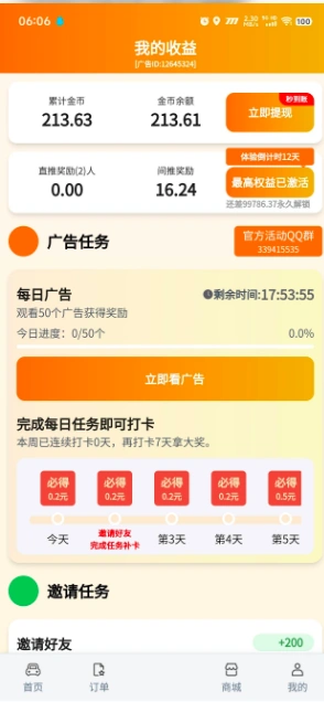 • 滴选极速版广告挂机(滴滴打车旗下平台)通过观看广告获得积分,积分直接提现到微信