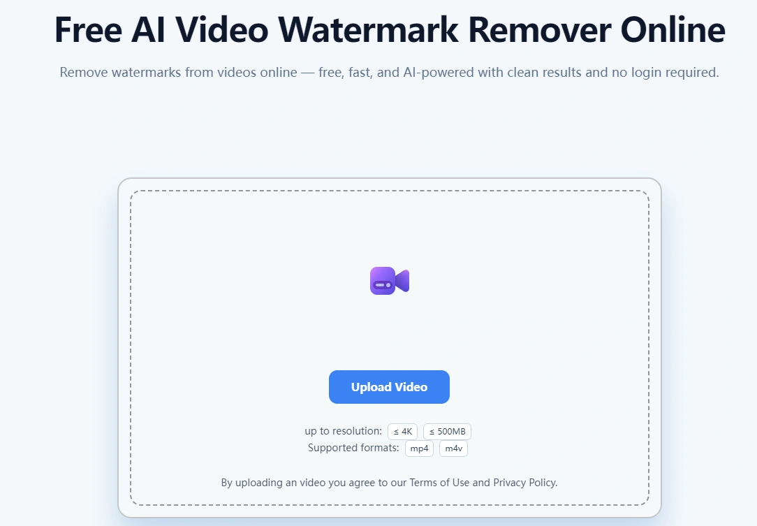 - 第一步,打开网站,点击 Upload Video 上传需要处理的视频。